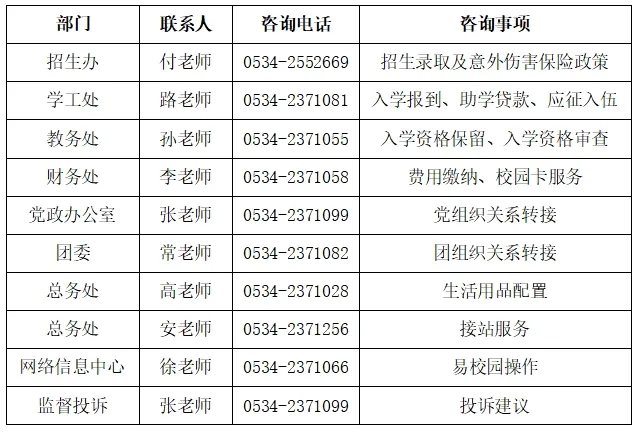 入学报到前如有疑问,可根据咨询事项致电学校相应部门咨询