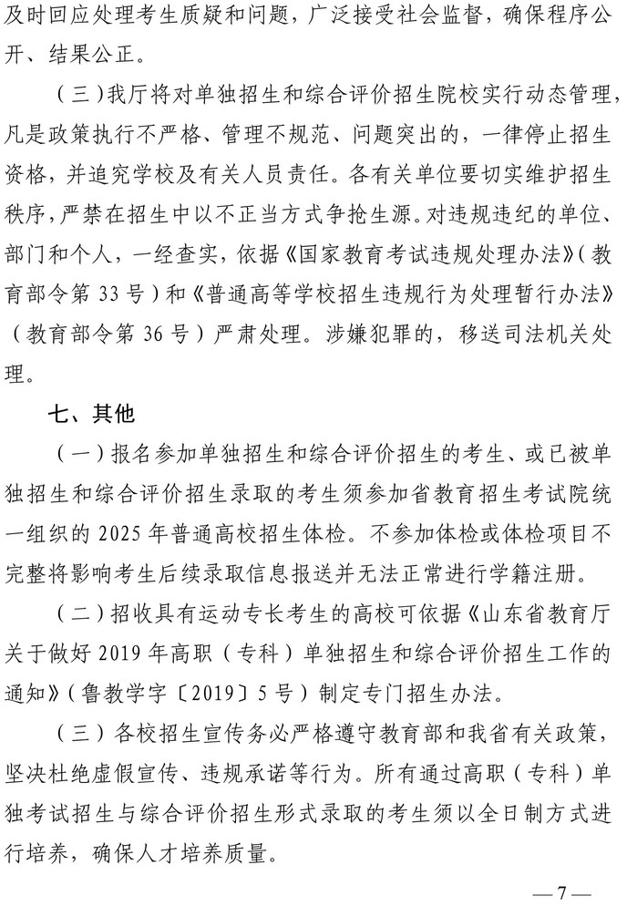 山东省2025年高职(专科)单独考试招生和综合评价招生工作通知