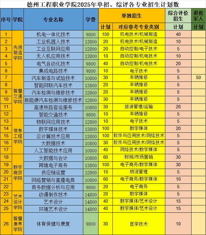 pp电子游戏平台网站2025年单招、综评各专业招生计划