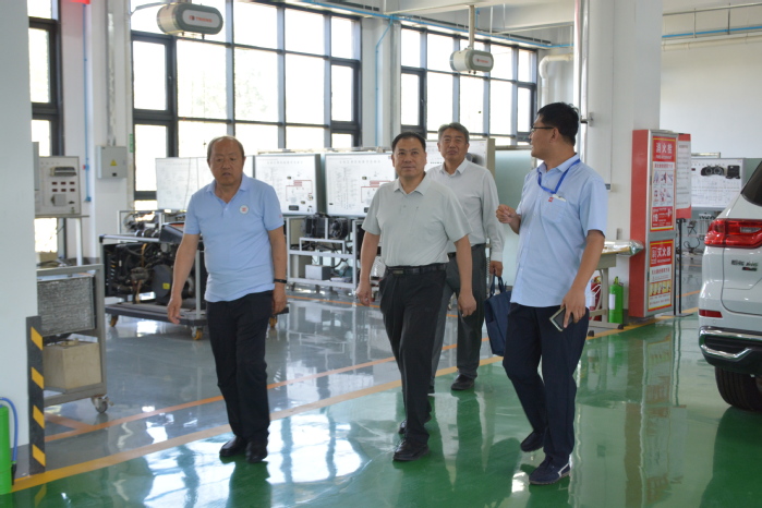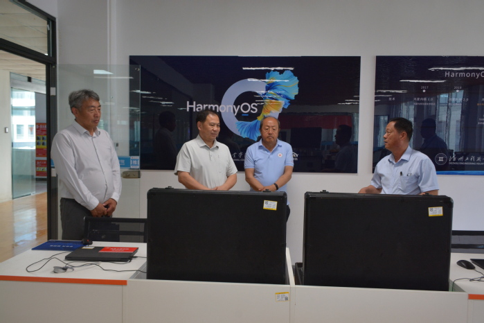 在校领导的陪同下,张建臣一行先后参观了学校京东数字商务产业学院、信息工程学院和智慧交通学院实训中心等。参观过程中,双方就产教融合、实习实训、教师队伍建设等问题进行了深入交流。
