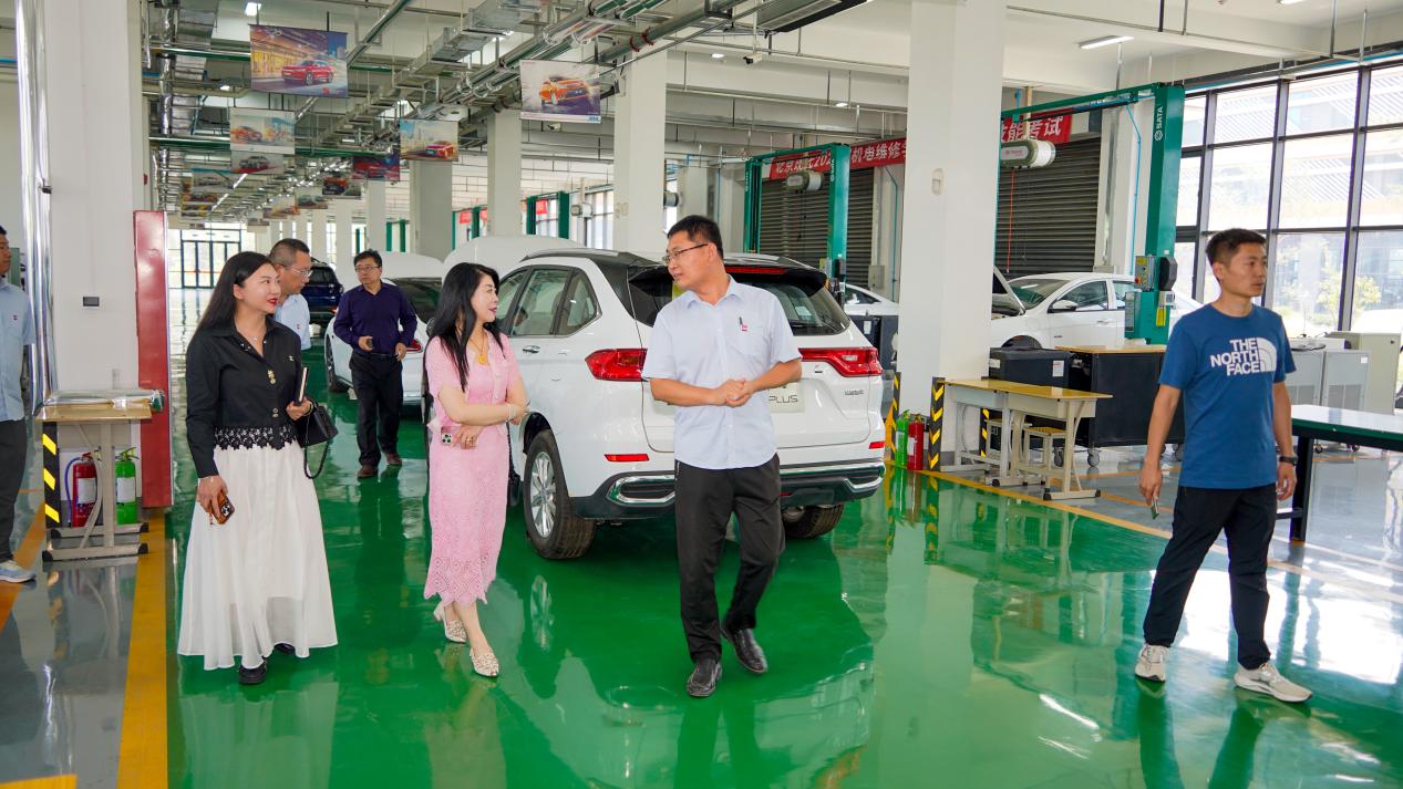 当日上午,于丹一行在校领导的陪同下,先后参观了湖畔展厅复兴大厦、京东数字商务产业学院、智慧交通学院等教学实训场所,实地了解学校办学特色、实训体系及人才培养模式。