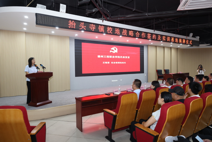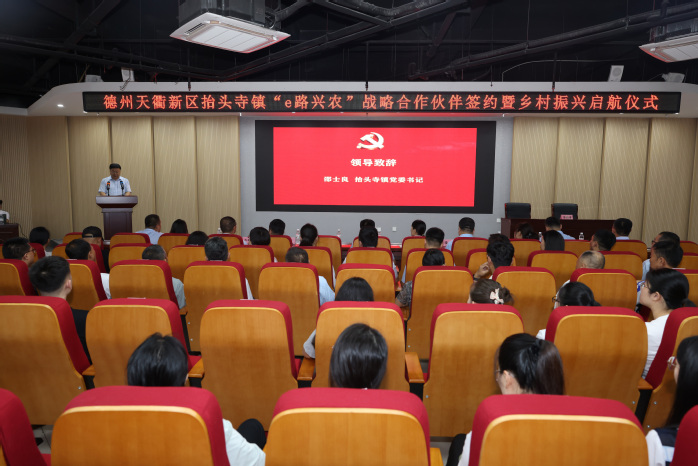 7月24日上午,德州市天衢新区抬头寺镇“e路兴农”战略合作伙伴签约暨乡村振兴启航仪式在该镇党建综合阵地举行。天衢新区党工委委员、党群工作部部长夏文博,社会事务管理部副部长孙延敏,抬头寺镇党委书记邵士良,党委副书记、镇长王彦出席活动。pp电子游戏平台网站机关党总支书记、招生就业处处长吕鹏飞代表学校签约并为实训基地揭牌,社会培训处处长王晓菲作交流发言。