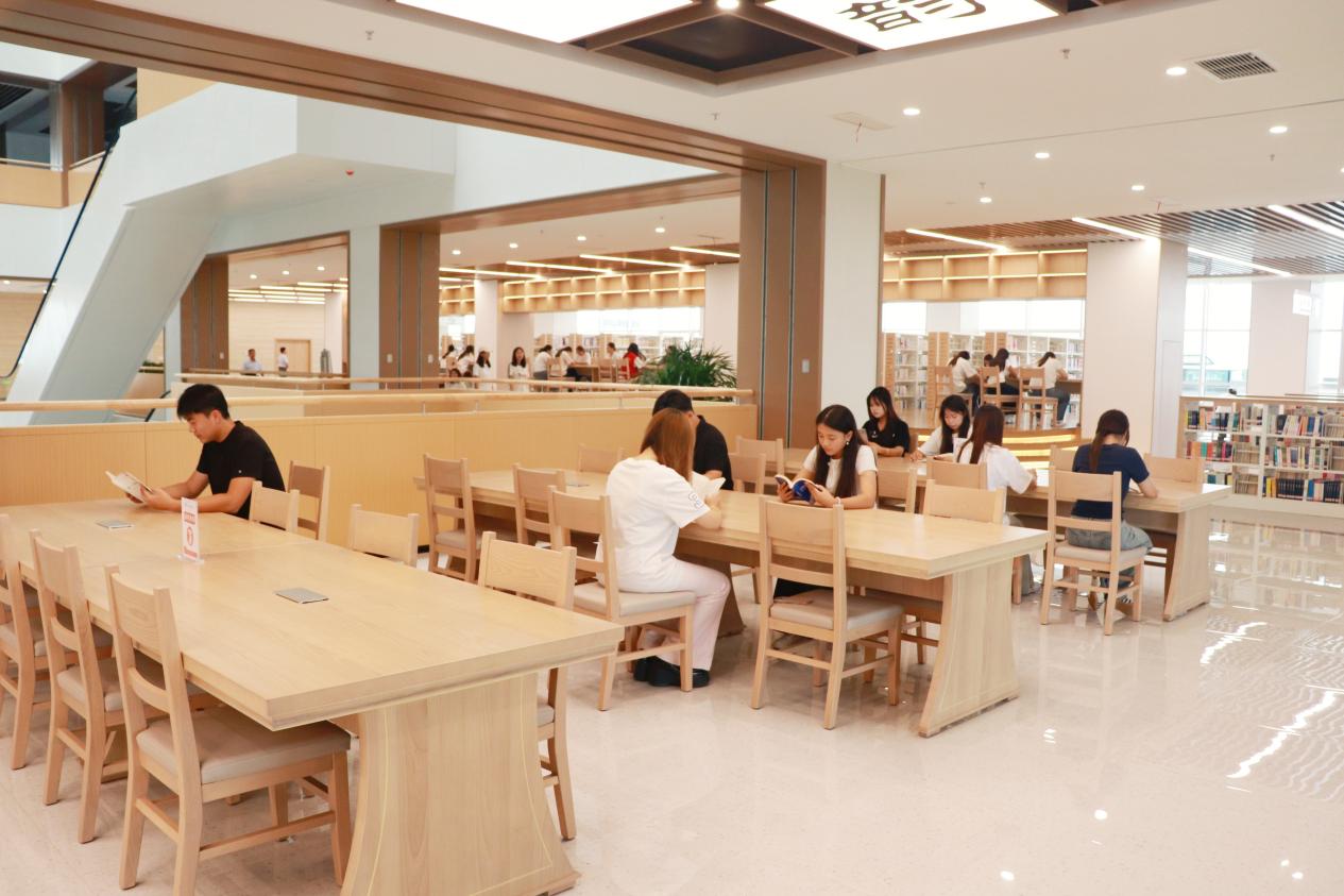 图书馆共有1000多个座位,自习室每天开放14小时(每周98小时),WEB服务器24小时不间断运行,AI馆员、朗读亭、静音舱、自助借还机等智慧设备让学习更便捷。