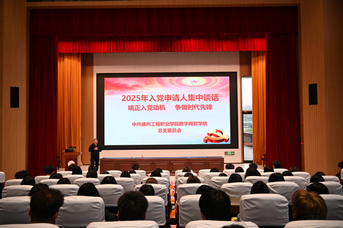 11月12日,数字商贸学院党总支书记、院长杨保福在复兴大厦一楼泰山厅与2024 级、2025 级全体入党申请人开展集体谈话。