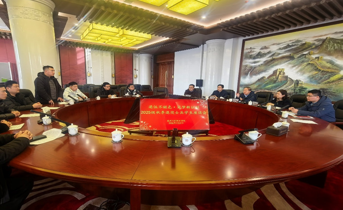 为深入落实国家退役军人相关政策,切实关怀退役士兵学生的学业与职业发展,1月21日,pp电子游戏平台网站召开2025级秋季退役士兵学生座谈会。校领导魏荣庆、赵红军、王守庆出席会议,相关部门负责人、退役士兵学生及班级辅导员共24人参加。