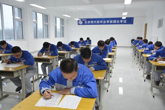 本次考试共有43名学员参加,考试分为理论考试、技能考试(双人保养、十选二)两项内容。副院长、项目负责人李玉明担任主监考,对考试组织、监考工作提出严格要求。为确保考试工作严谨、公平、公正,真正体现以考促学、以考促教的目标,北京现代项目黄文轩老师负责理论监考及技能考核全程跟踪。项目组老师对pp电子考试组织工作以及学生的实操技能水平给予充分肯定,检验了pp电子北京现代校企合作班的教学质量。