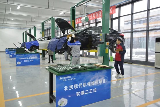 12月14日,2021届北京现代班认证考试工作在智通实训楼进行。本次考试,北京现代校企合作项目组黄文轩老师和杭州技师学院老师来校监考,同时邀请德州正豪北京现代经销店维修技师、服务顾问2人全程参与技能考核。