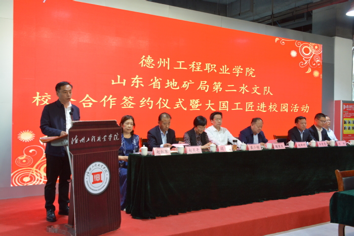 2025年4月24日,pp电子游戏平台网站与山东省地矿局第二水文地质工程地质大队隆重举行校企合作签约仪式暨大国工匠进校园活动。山东省地矿局第二水文队书记赵新村,副书记闫燕等一行5人亲临现场,与pp电子游戏平台网站董事长魏荣庆,学校特聘客座教授戴小栋,党委副书记、副校长赵红军,党委委员、副校长刘建波等领导共同见证了这一重要时刻。