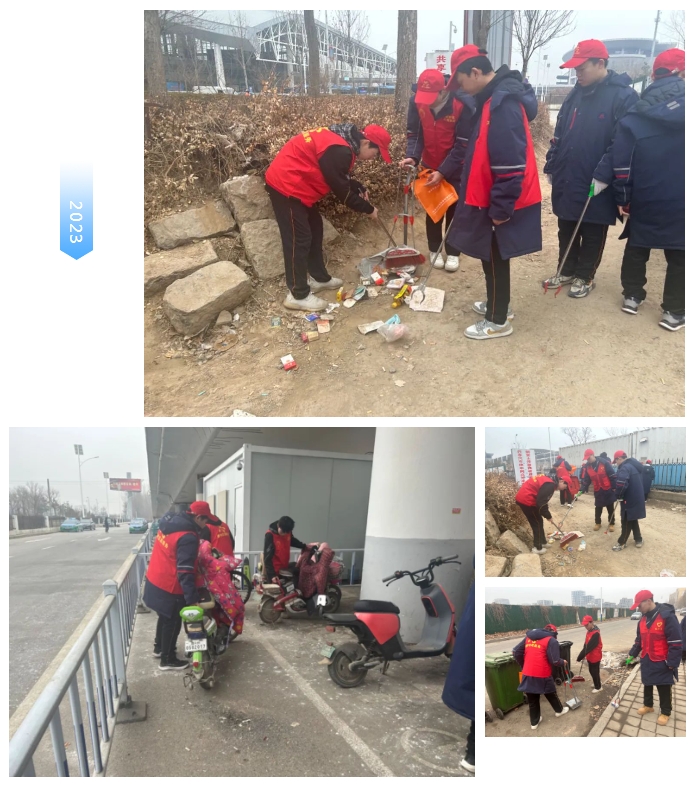 3月4日下午,pp电子组织青年志愿者开展“清理环境卫生,共建美好家园”志愿服务活动。同学们先后来到牟庄社区、崇德八大道、崇德十大道、德州东站开展志愿服务,清理环境卫生。志愿者身着的红色马甲好似一团火苗,热情高涨、干劲十足,大家捡拾清理白色垃圾、烟头、树叶等零碎垃圾,对社区小区和主干道等卫生死角进行全方位打扫,整个清扫过程细致有序、成果明显,得到周边居民一致好评。