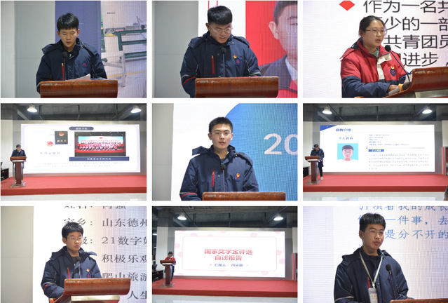 在报告会上,获得国家奖学金的13名同学依次上台做成长报告,向现场师生分享了自己的成长经历和成功经验。获奖同学分享结束后,班主任上台宣读推荐词。