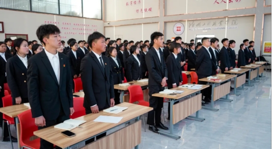 围绕“职业教育与强国建设的同频共振”,讲师们深入剖析了当前职业教育发展的机遇与使命。号召同学们要树立“技能报国”的信念,以“大国工匠”为标杆,锤炼过硬本领,服务国家战略需求。勉励大家“在实训车间里打磨匠心,在社会实践中厚植情怀”,做“让党放心、爱国敬业,担当民族复兴重任的时代新人”。“信心源于底气,底气来自奋斗。”结合学院“共同建设一所好大学”的发展愿景,讲师们号召青年学子要以“功成不必在我,功成必定有我”的胸襟,投身学校高质量发展和区域经济建设,将青春汗水挥洒在科技创新、乡村振兴、产业升级一线,用实干诠释“强国有我”的青春誓言。