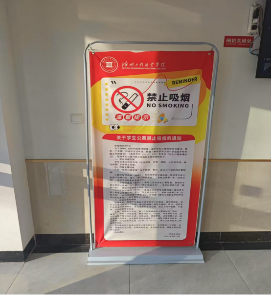 本次活动在公寓外围及公寓大厅进行禁烟条幅、海报的张贴。加强学生对无烟校园的创建意识的同时,提高学生对禁烟重要性的认识。