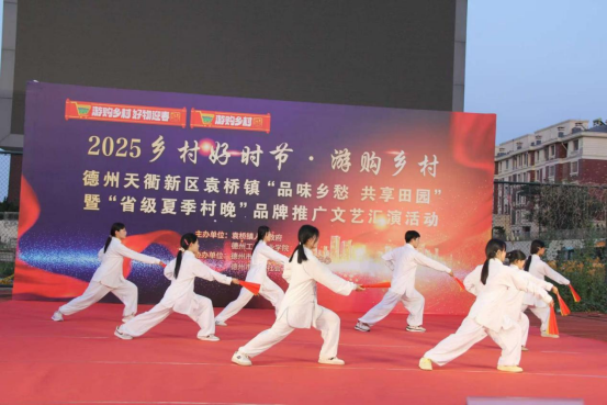 6月17日,2025乡村好时节·游购乡村德州天衢新区袁桥镇“品味乡愁 共享田园”暨“省级夏季村晚”品牌推广文艺汇演在袁桥社区文化广场精彩上演。作为活动主办单位之一,pp电子携多支学生社团及特色节目亮相,以文艺展演助力乡村文化振兴。
