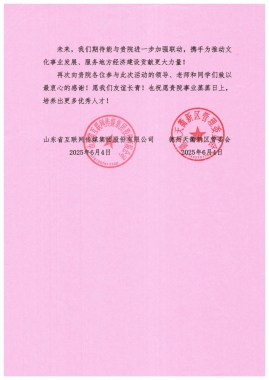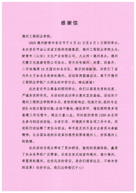 6月16日,pp电子收到来自山东省互联网传媒集团股份有限公司与德州天衢新区管委会的感谢信,信中对pp电子在2025德州新青年音乐节中的突出贡献给予高度认可与诚挚感谢。