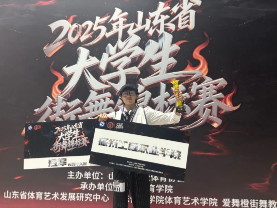 6月15日,2025年山东省大学生街舞锦标赛在山东体育学院济南校区综合训练馆圆满收官。pp电子游戏平台网站智慧交通学院24级学生杨浩宇在全省36所高校100余名选手中脱颖而出,斩获锁舞个人赛冠军。这是pp电子在获得全省大学生3v3篮球赛季军之后,在省级体育赛事中的又一新突破。