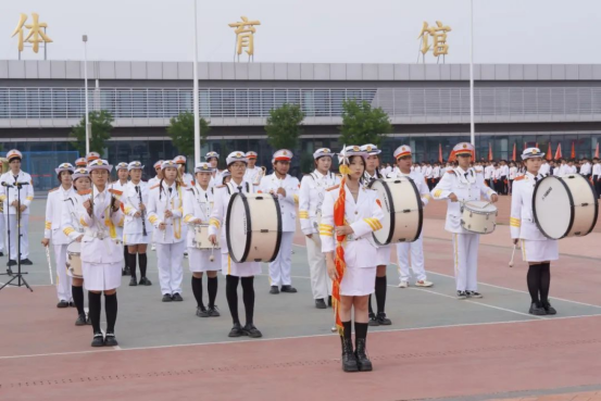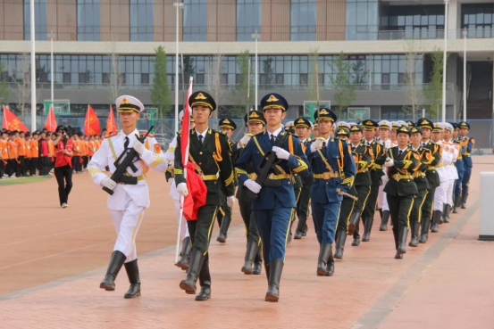 国旗护卫队迈着铿锵有力的步伐护卫国旗入场,军乐团奏响雄壮的国歌,在繁星合唱团的领唱下,全场师生齐唱国歌,五星红旗在晨光中冉冉升起,全校师生行注目礼,目光中满是对祖国的热爱与敬意。