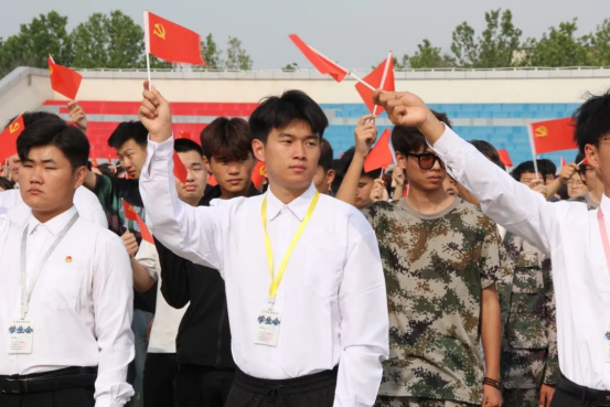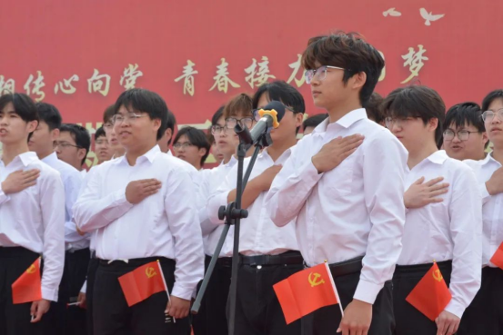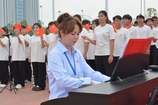 万人同声,红心向党。师生手持党旗,齐声高唱《没有共产党就没有新中国》,激昂的旋律与《唱支山歌给党听》的深情演绎交织,汇聚成一片澎湃的红色海洋,抒发了全体德工人坚定跟党走、建功新时代的豪迈情怀。悠扬的旋律与洪亮的歌声交织,凝聚起全校师生对党和国家的深情厚谊,将仪式推向高潮。