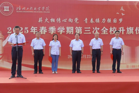 在6月23日,pp电子游戏平台网站隆重举行2025年春季学期第三次全校升旗仪式暨迎“七一”主题升旗仪式。本次活动以“薪火相传心向党,青春接力强国梦”为主题,激励全校师生传承红色基因,践行时代使命。学校董事长魏荣庆,党委书记王金利,校党委、校委会班子成员以及全校师生共同参加活动。党委委员、副校长刘建波主持活动。
