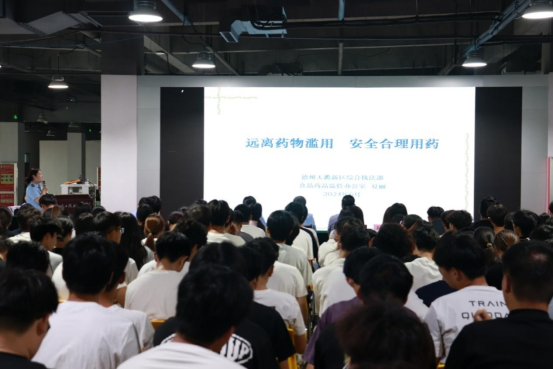 活动现场播放的禁毒宣传片,通过触目惊心的案例和数据,直观展现药物滥用对个人、家庭及社会的严重危害,引发师生强烈共鸣。随后,天衢新区禁毒办民警高聪围绕“毒品的伪装手段与防范技巧”展开讲座,结合青少年身心特点,剖析电子烟等新型毒品的隐蔽性危害,传授“不接受陌生人物品”“拒绝进入复杂场所”等实用防范方法。德州天衢新区综合执法部食品药品监管办公室副主任夏丽则聚焦“科学用药与健康管理”,详细讲解青少年常见的用药误区,如滥用感冒药等,强调“遵医嘱用药”“药品分类存放”等科学应对措施。