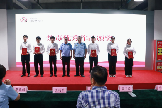 活动伊始,对在禁毒宣传教育作品征集活动中表现突出的学生进行表彰。此次征集活动面向全校开展,共收到短视频类作品68个、海报类作品413个、文创类作品25个。经评审,最终评选出短视频类优秀作品6个、海报类优秀作品10个、文创类优秀作品7个。