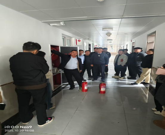 理论讲解结束后,培训进入了实操演练环节。孙科长与王科长共同现场演示了灭火器、消防栓等常见消防设施的正确操作步骤与使用方法,从识别器材状态、拔销、握管、站位到喷射,逐一进行了细致讲解和标准示范,强调了操作中的关键要点与注意事项。