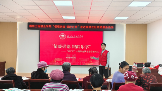 为切实守护老年群体财产安全,弘扬尊老助老传统美德,11 月 29 日,pp电子游戏平台网站“德工红” 志愿服务队走进崇德社区,在 “情暖崇德,银龄乐享” 主题志愿服务活动中,专为社区老年人打造了一场防诈骗专题讲堂,以实用知识为老人们的晚年生活筑牢 “安全屏障”。