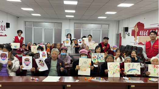 过程中,志愿者们不断送上鼓励:“奶奶您画的脸谱真有神!”“奶奶这个小柿子做得太精致了!” 暖心的话语让社区居民更有信心。作品完成后,志愿者们主动为社区居民与手工作品合影留念,他们捧着自己的作品,脸上满是自豪与喜悦。