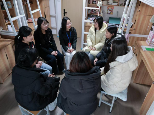 为进一步延伸关怀,活动创新采用“讲座+入户”模式。讲座结束后,王然然老师与随行辅导员并未匆忙离开,而是带着温暖与专业走进了学生公寓。他们与同学们进行面对面、一对一的交流,倾听心声,解答个性化困惑,将心理关怀直接送达学生身边。这种“讲座+入户”的创新服务模式,得到了同学们的热烈欢迎和真诚反馈,让大家感受到心理支持并非遥不可及,而是触手可及的温暖。