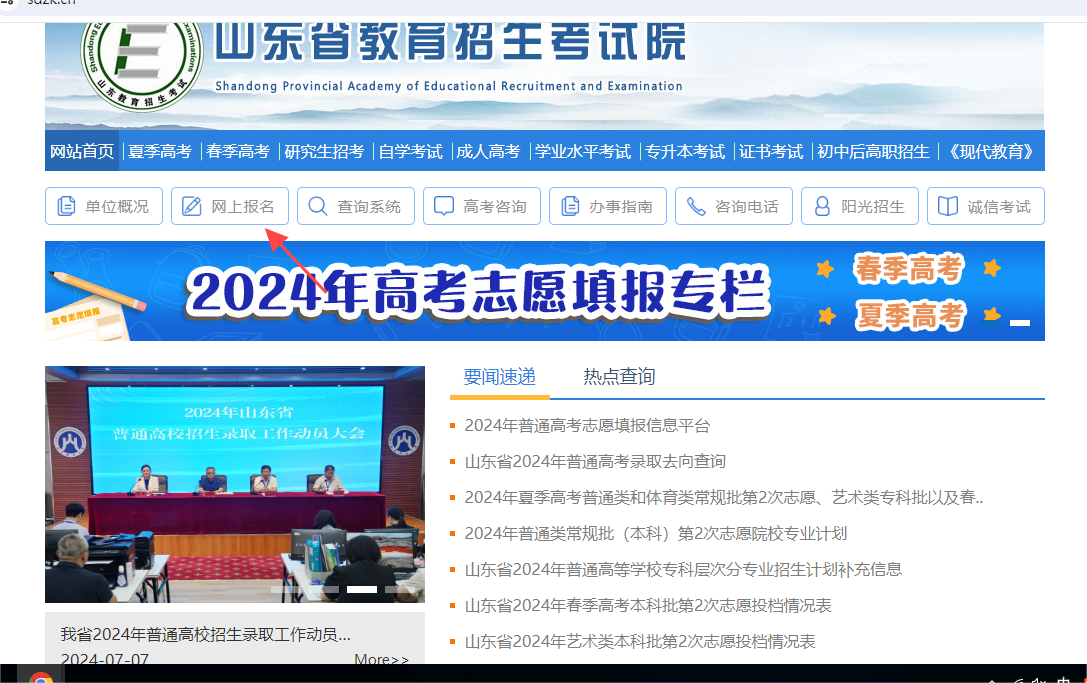 1.登录山东省教育招生考试院官方网址:https://www.sdzk.cn/
