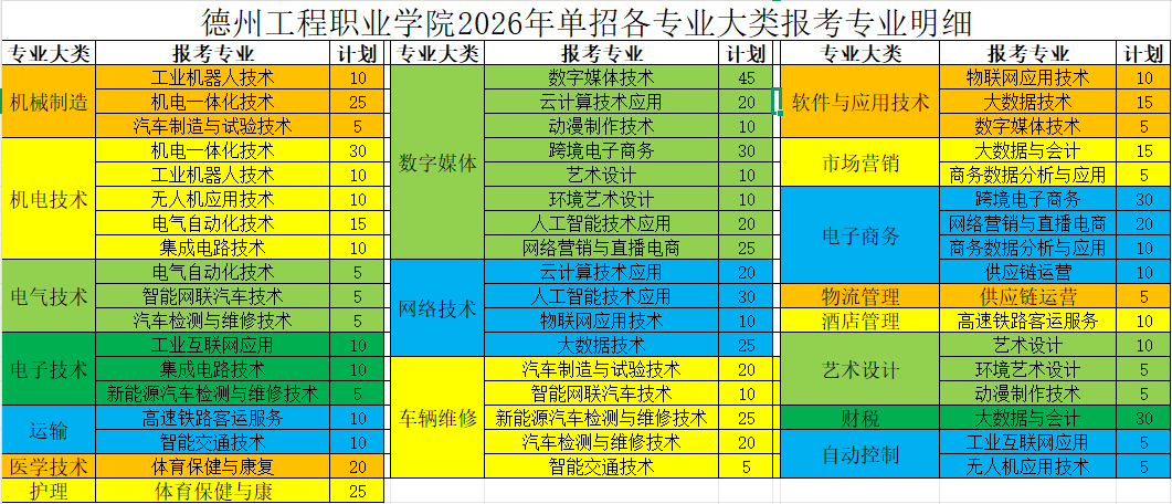 pp电子游戏平台网站2026年单招各专业大类报考专业明细