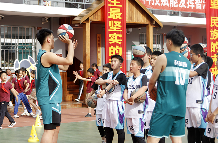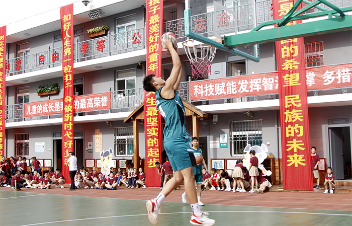 捐赠仪式过后,高水平篮球队队员进行了篮球表演及教学活动。活动开始前,他们认真分析了小学生们的年龄特点和篮球水平,制定了适合小学生们的篮球教学计划,并进行了反复的练习和调整。在活动现场,永利篮球队队员通过简单、易懂的语言,向小学生们传授了篮球基本技能和战术,让小学生们在轻松愉悦的氛围中学习篮球知识,提高篮球水平。